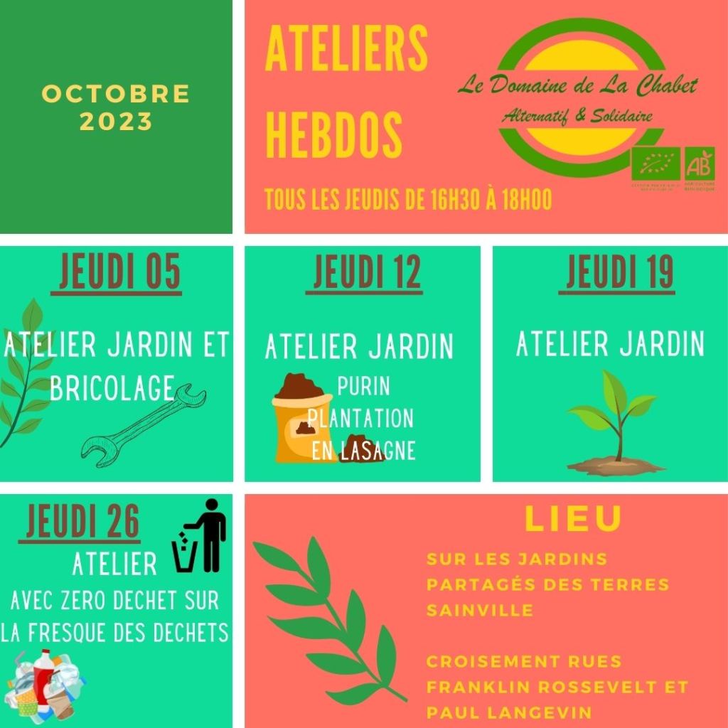 Tous les jeudis se tiennent nos ateliers, où chacun·e vient échanger, apprendre et découvrir autour du jardin . Une à deux fois par mois, des associations autour du développement durable, des agriculteurs, des producteurs ou encore des transformateurs viennent partager avec nous un savoir-faire, des connaissances pour améliorer nos pratiques .