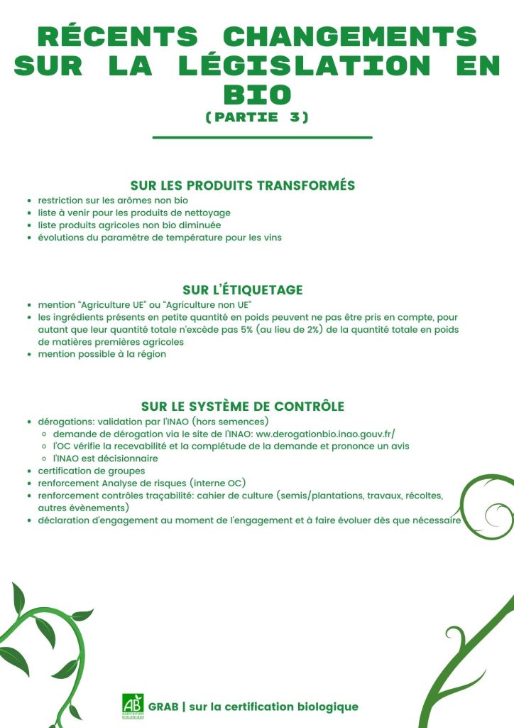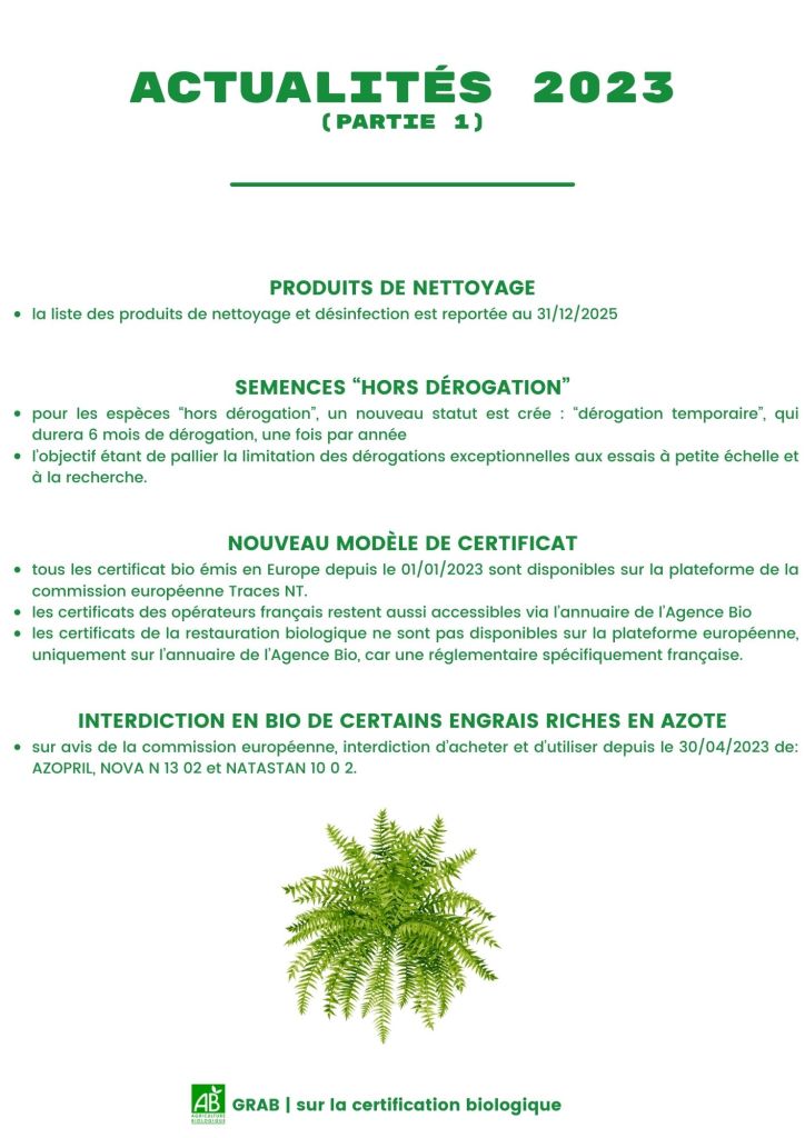 SUR LA CERTIFICATION BIOLOGIQUE ET LES EVOLUTIONS LEGISLATIVES DE 2023