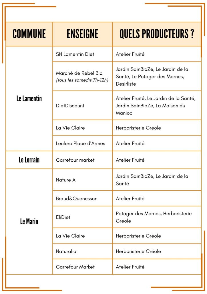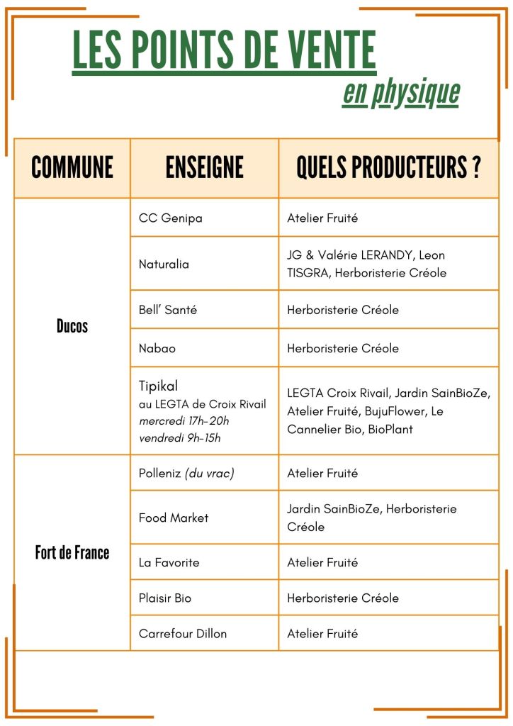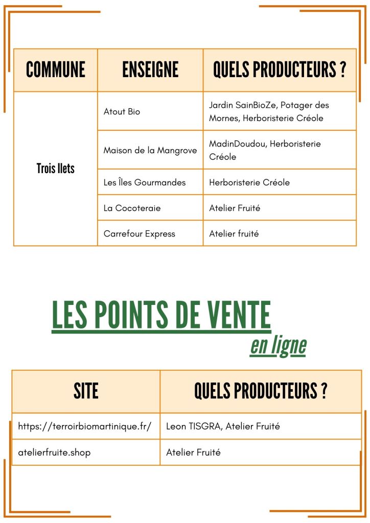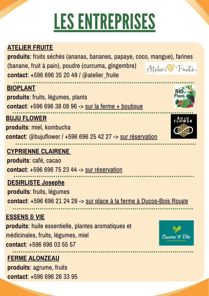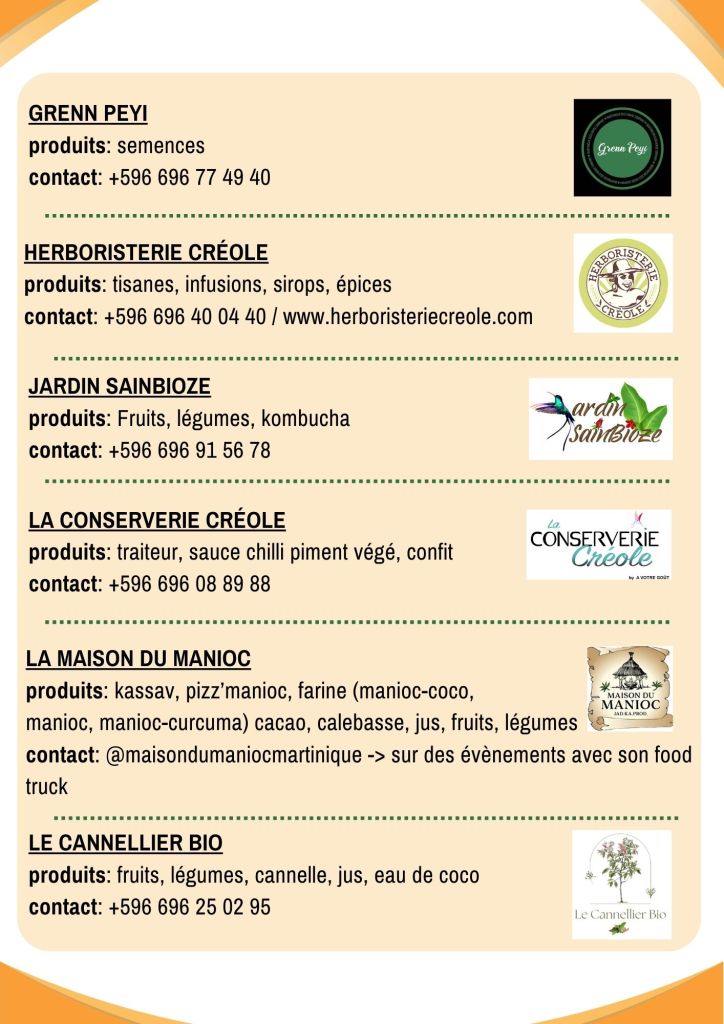 CONTACTS DE LA FILIERE BIOLOGIQUE MARTINIQUAISE